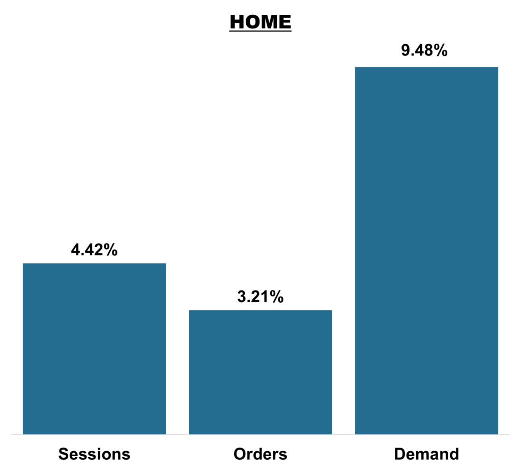 Home brands showed modest improvement in August, with sessions up +4.42%, orders increasing +3.21%, and demand rising +9.48%.
