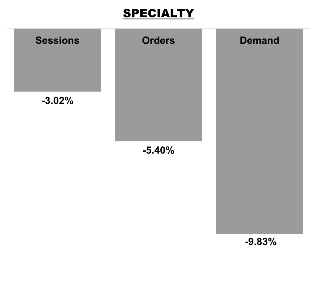 Specialty Brands continue to face pressure this year, with August sessions down –3.02%, orders falling –5.40%, and demand declining –9.83%.
