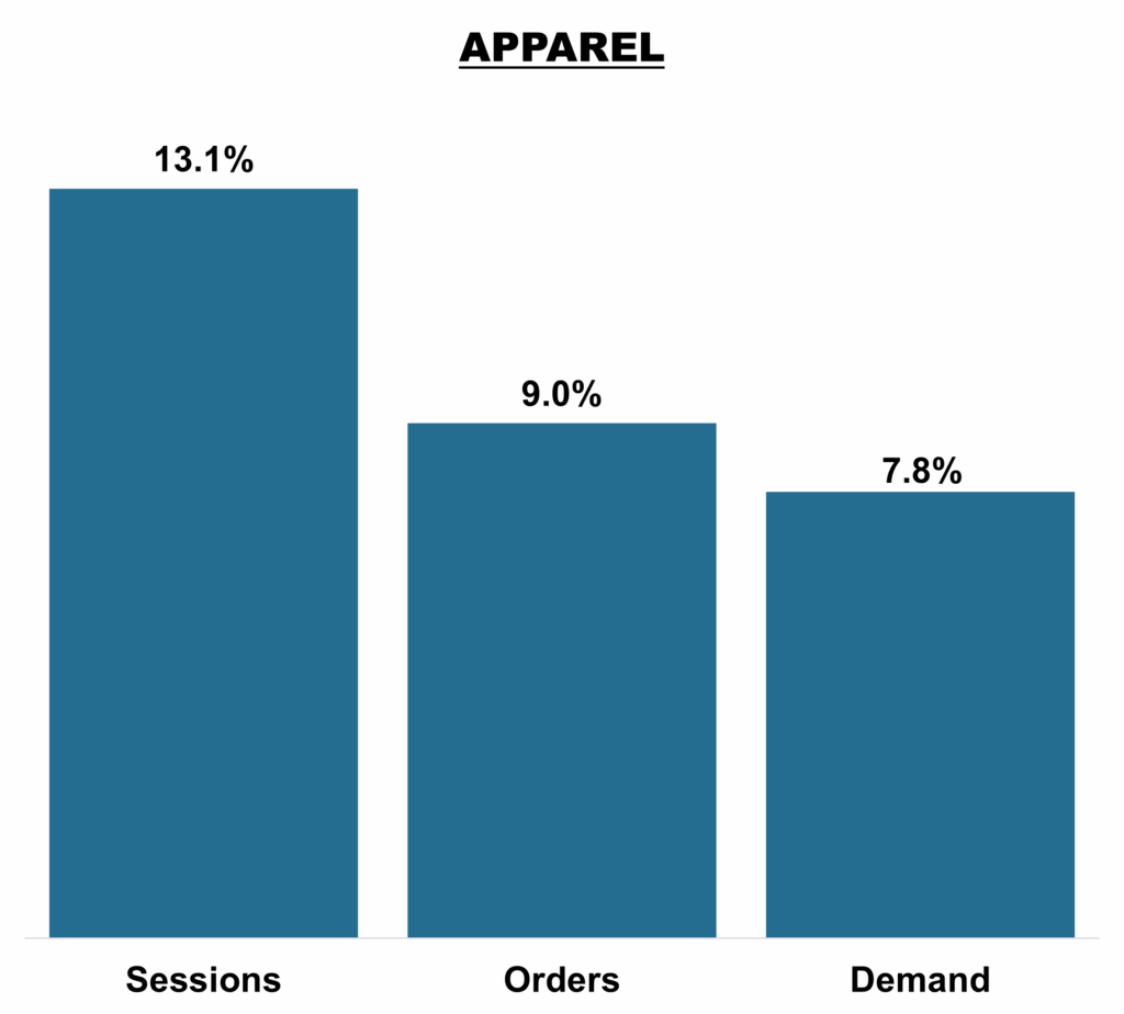 Sessions increased +13.1%: Apparel retailers saw sessions jump as shoppers flocked online across Labor Day weekend.