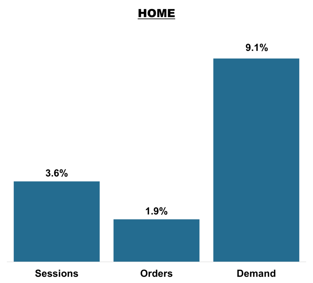 Demand climbed +9.1%: With higher average order values (AOVs), demand for home goods was strong.