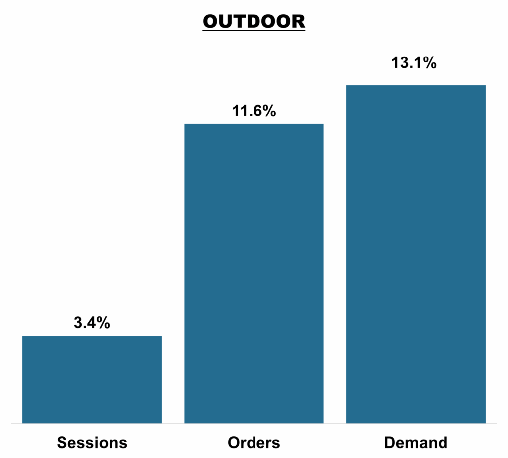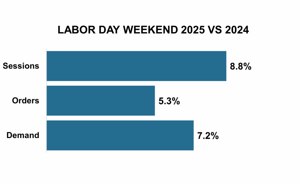 Sessions increased +3.4%: Labor Day 2025 boosted sessions for outdoor brands, reflecting seasonal momentum.