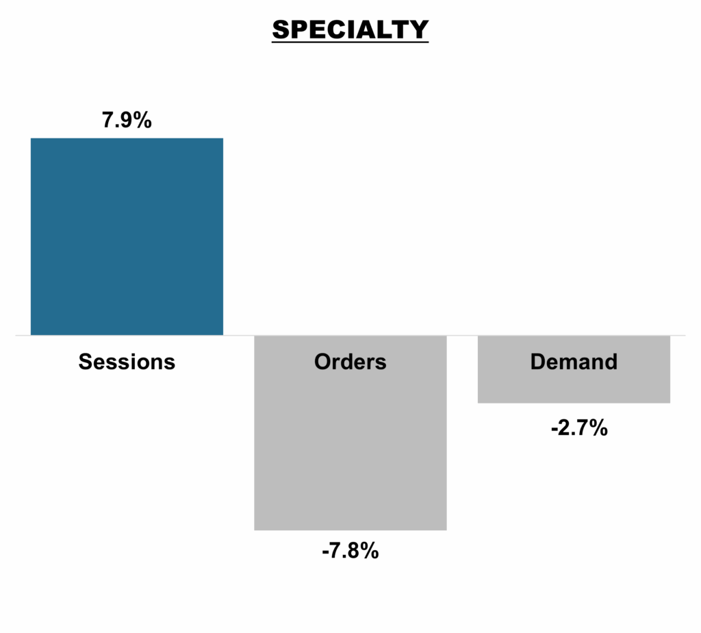 Sessions increased +7.9%: Specialty Retailers saw increased sessions compared to Labor Day weekend last year.