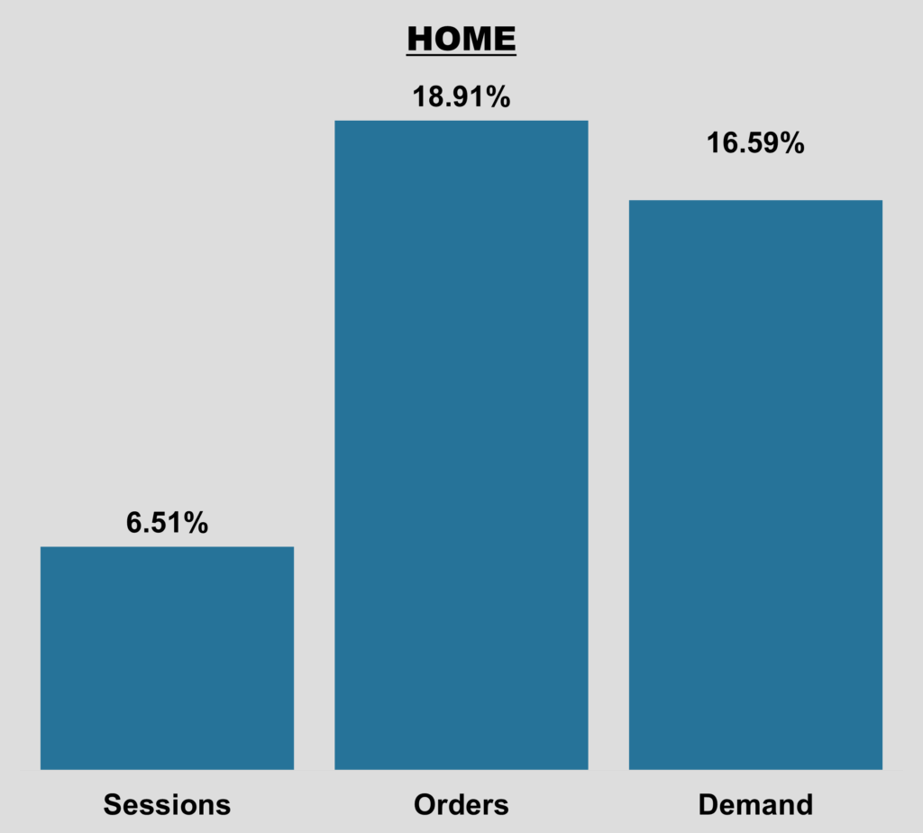 Home brands experienced strong year-over-year growth in May 2025, with website sessions increasing by +6.51%, with strong gains in orders up +18.91%, and demand up +16.59%. Home goods and furnishings outperformed furniture.