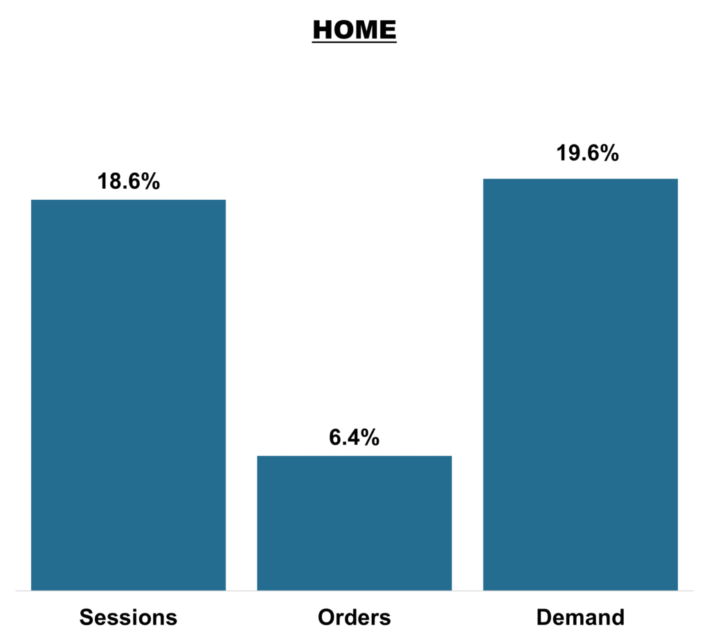 Sessions surged 18.6%, reflecting a significant increase in consumer interest during the holiday season. Despite this traffic spike, order growth held steady at 6.4%, suggesting conversion efficiency remains a challenge. Demand accelerated to 19.6%, outpacing both traffic and orders, driven by higher average order values and strong spending on home products. Overall, momentum is robust; however, optimizing conversions will be key to fully leveraging elevated traffic levels.