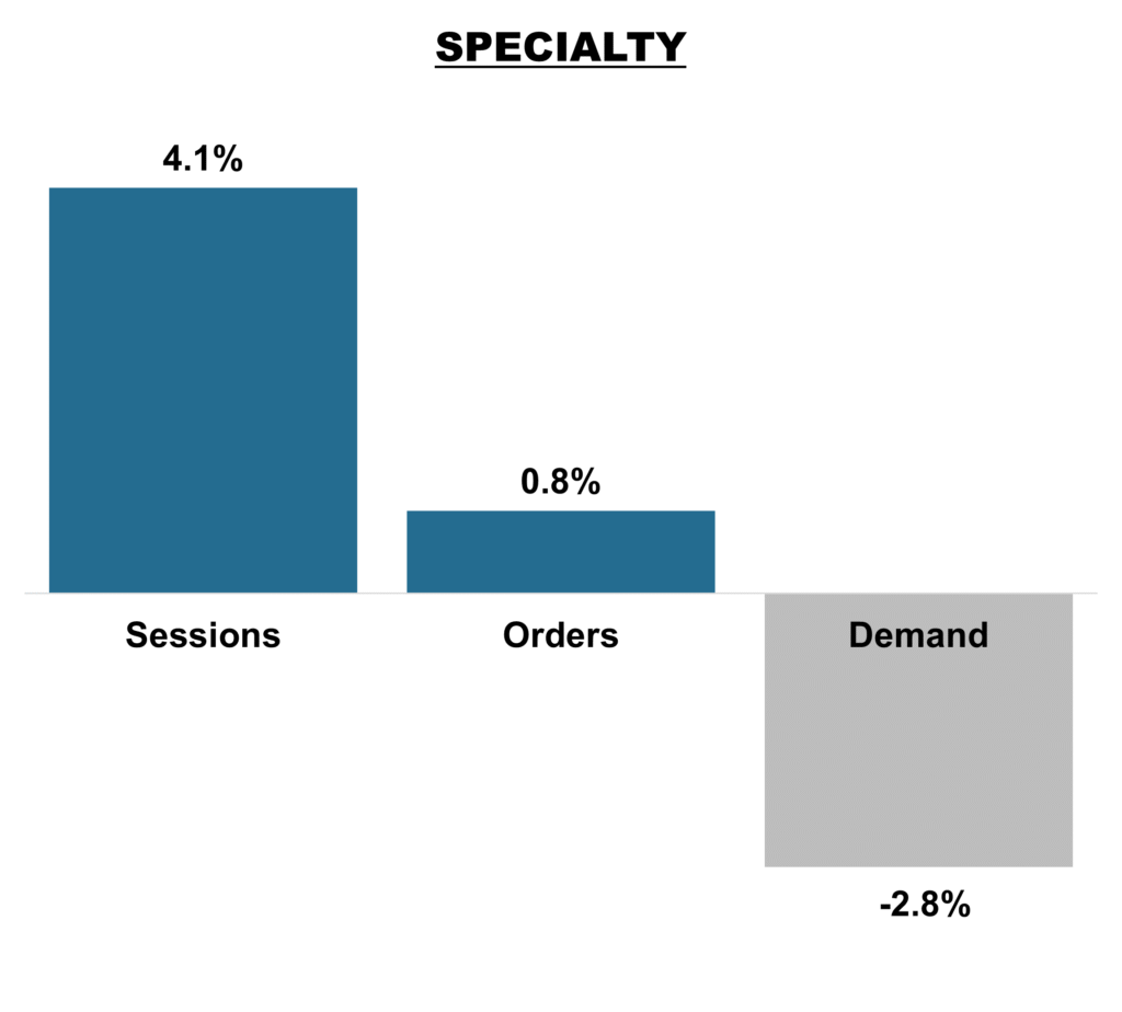 Specialty brands showed signs of recovery in September after a weak August. Sessions rebounded from a -3% decline in August to a +4.1% increase, indicating renewed shopper interest and stronger site traffic.