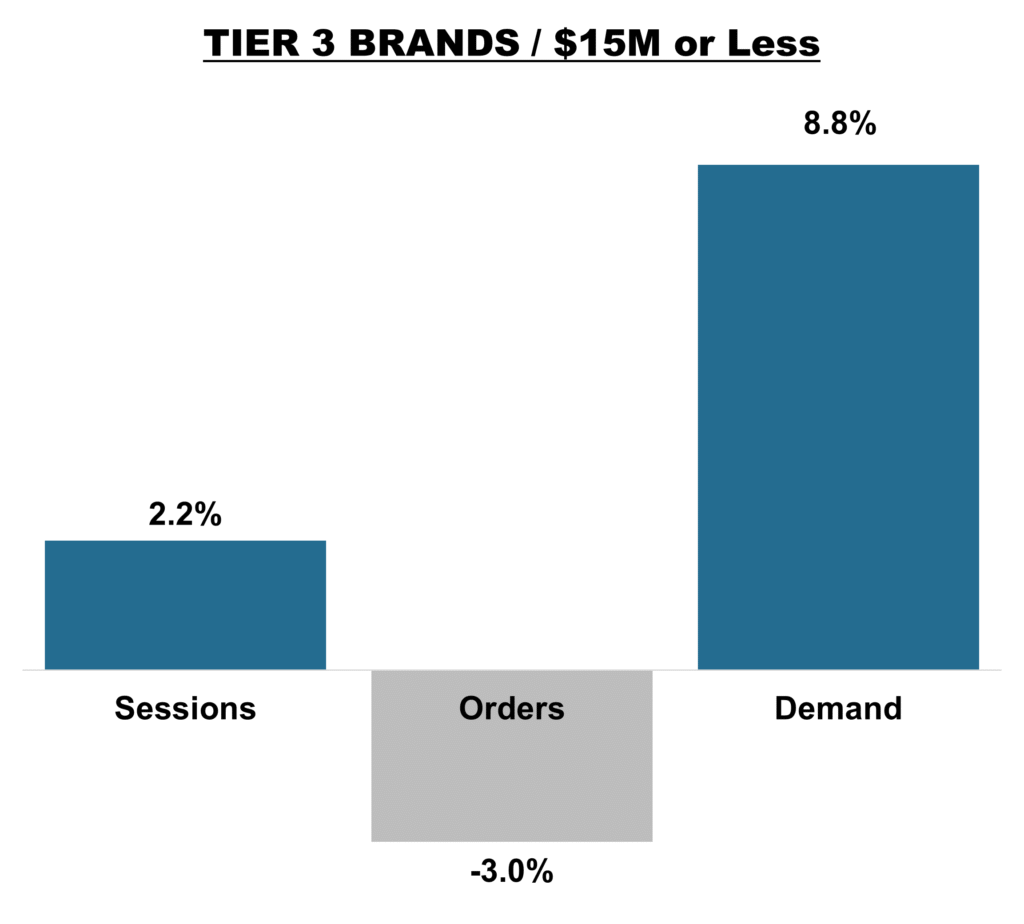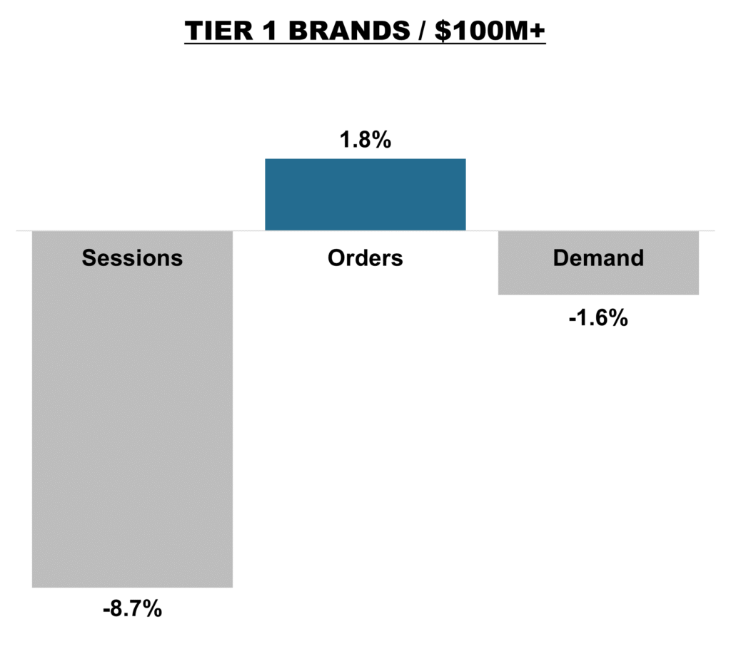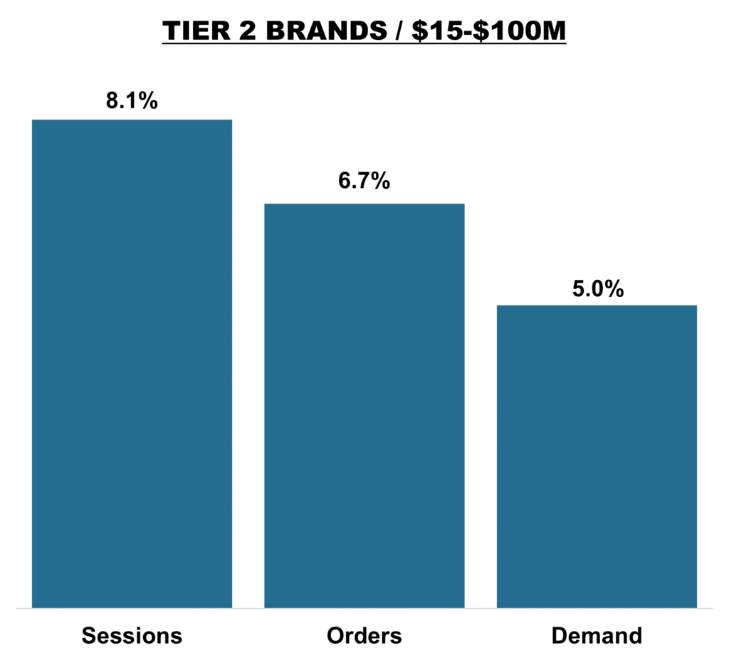 Tier 2 brands saw positive results in September. Sessions increased +8.1% reflecting continued traffic growth and healthy shopper engagement.